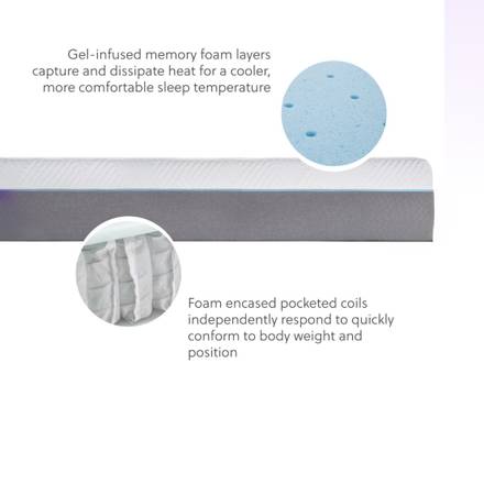 The Wellsville® 11 Inch Gel Memory Foam Innerspring Hybrid Mattress brings a luxurious customer experience to your showroom floor. Consider pairing it with our 11 Inch Latex Hybrid Mattress for the ultimate mix and match opportunity. The high-end componentry elevates the mattress quality, feel, and durability—backed by a 10-year warranty. Whether your customers crave memory foam or prefer the time-tested feel of innerspring coils, our hybrid mattresses satisfy a variety of sleep preferences and body types. And the popular 11-inch profile makes it easy for your customers to find well-fitting sheets. Perfectly suited for adjustable bed bases, be sure to display this mattress atop your best-selling bed base model.