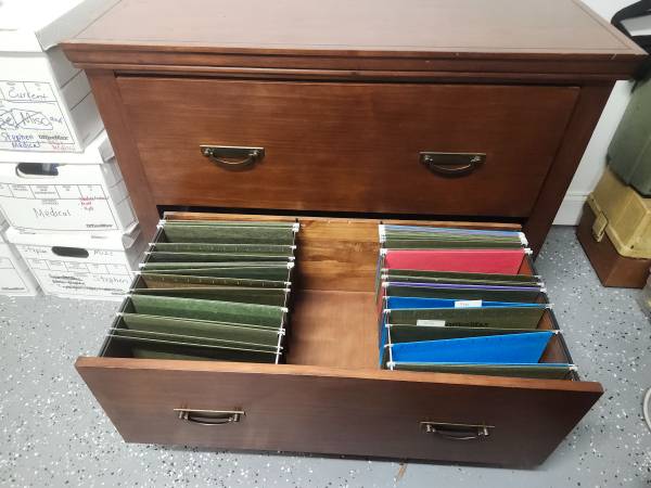 Solid Wood 2-drawer File Cabinet Each drawer can be configured for either letter or legal hanging folders.